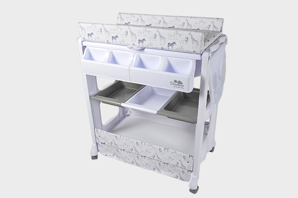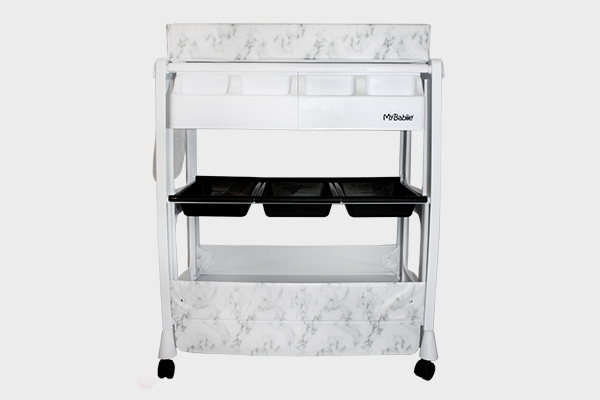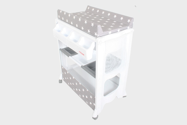 Loads of storage trays and space underneath for towels, nappies and other essentials