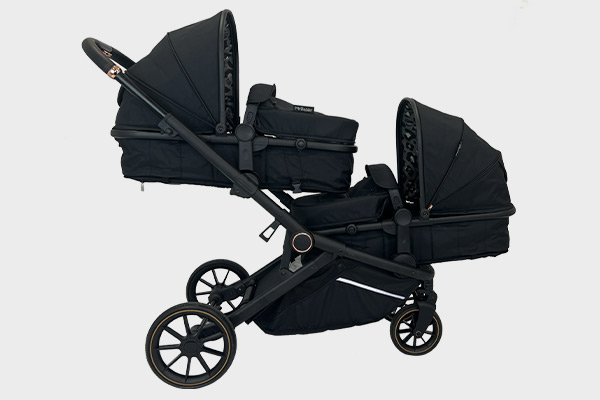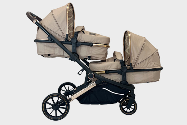 Version with two carrycots (handle in shortest position) (L x W x H): 135 x 60.5 x 130 cm